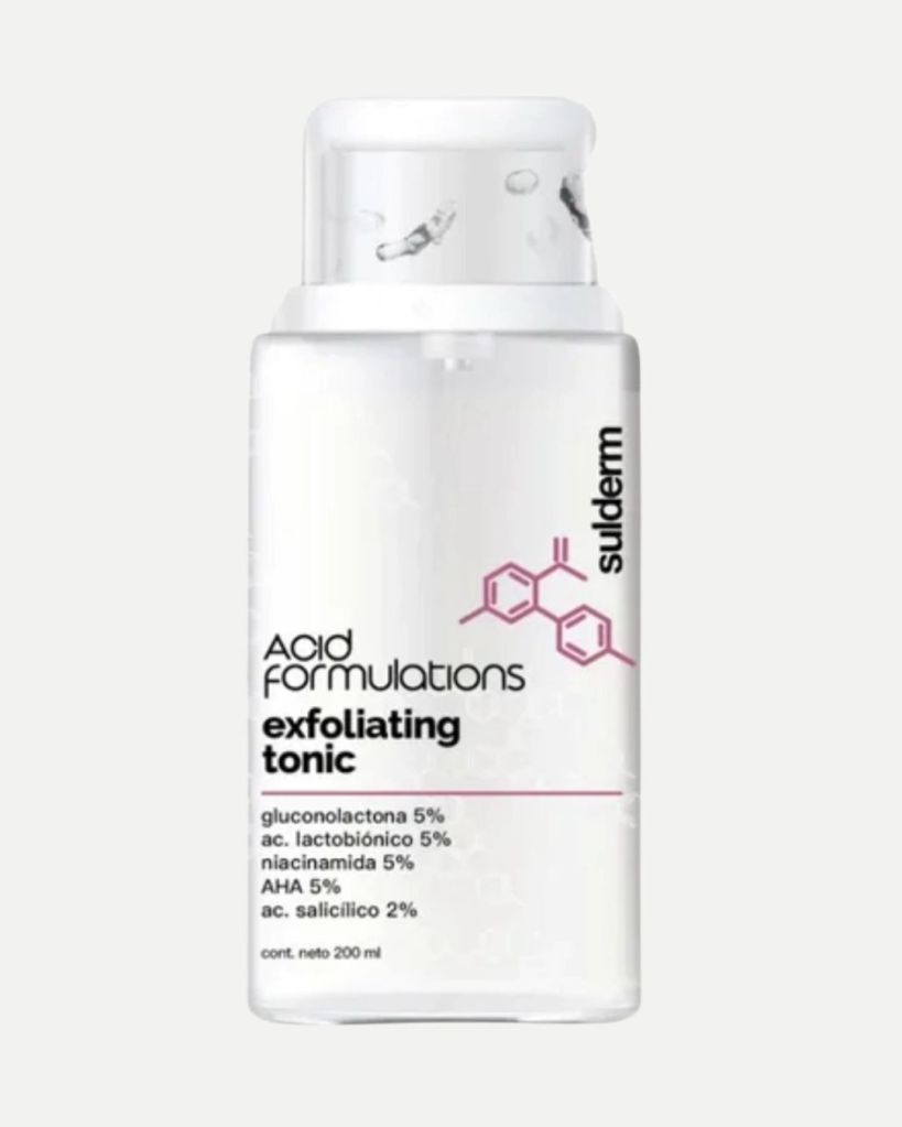 Tónico exfoliante diseñado para eliminar células muertas y mejorar la textura de la piel. Su fórmula suave pero efectiva promueve una renovación celular constante, dejando el rostro más luminoso y fresco.