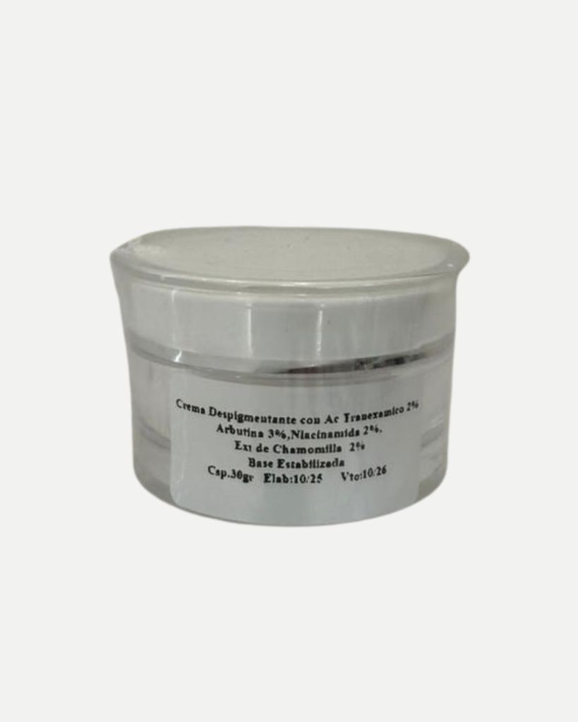 El ácido tranexámico en crema es un ingrediente despigmentante muy eficaz para tratar y prevenir manchas como el melasma, pecas y marcas de acné, unificando el tono de la piel y mejorando la luminosidad.